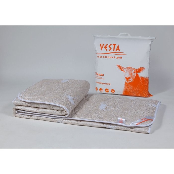 Одеяло зимнее, размер 220×205 см, шерсть мериноса, ткань глосс-сатин