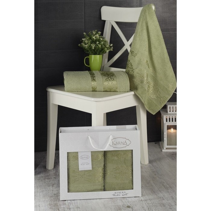 Комплект махровых полотенец «Rebeka», размер 50×90 см — 1 шт., 70×140 см — 1 шт., тёмно — зелёный