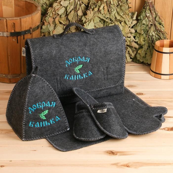 Для комфортного отдыха в парной возьмите с собой набор банных принадлежностей. Предметы из этого комплекта предохраняют тело от перегрева и являются средствами индивидуального пользования. Влажные изделия рекомендуется сушить в расправленном виде на горизонтальной поверхности. Принадлежности из войлока и фетра стирайте вручную при температуре воды 30 °C.