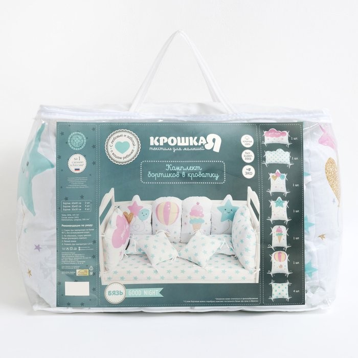Бортики в кроватку Крошка Я «Good night» (60х42см- 2шт, 30х42см- 4шт, 30х30см- 4шт), 100% хлопок