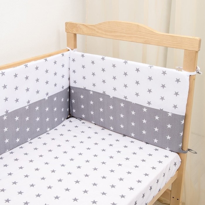 Борт в кроватку «День и ночь», из 4-х частей, чехлы съемные, цвет серый, бязь хл100%