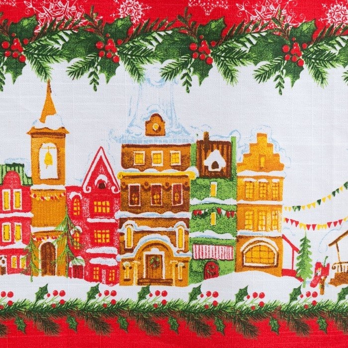 Скатерть Доляна «Новый год: Волшебный город» 180×149 см, 100% хлопок, 164 г/м2