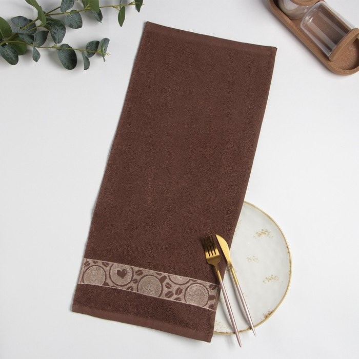 Полотенце махровое жаккардовое 30×60 см, кофе МИКС, хлопок 100%, 340 г/м2