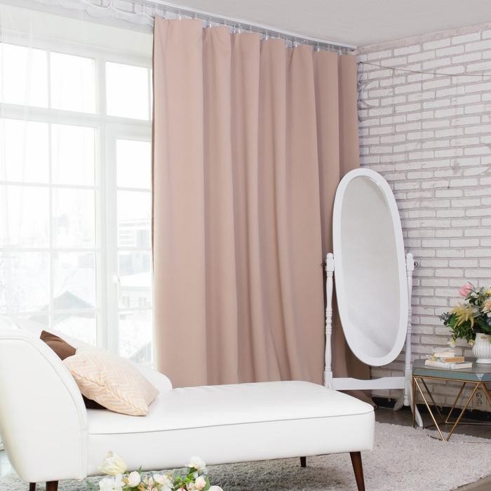 Штора портьерная Этель 250×265 см, двусторонний блэкаут, цвет бежевый, пл. 240 г/м2