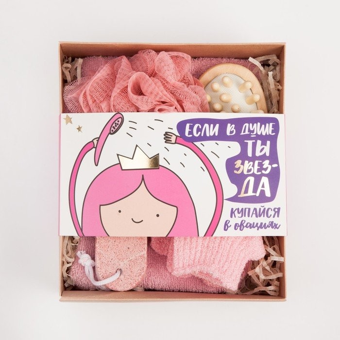 Подарочный набор «Звезда в душе» полотенце 30×60 см и банные аксессуары