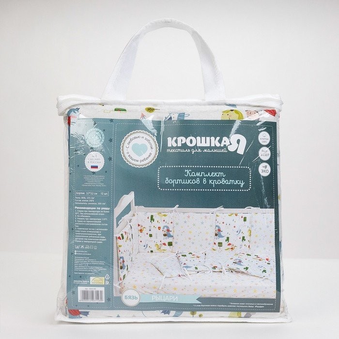 Бортики в кроватку Крошка Я «Рыцари» (32×32 см — 12 шт.), бязь/синтепон