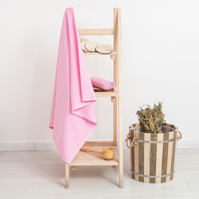 Полотенце вафельное банное Экономь и Я 80×150 см, цвет розовый 100%хл, 200 гр/м2