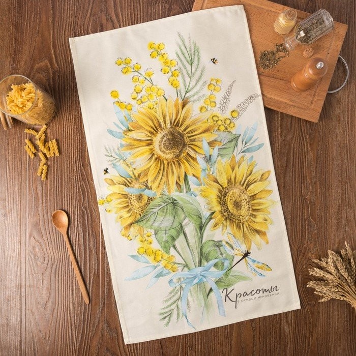 Полотенце «Этель» Солнечные цветы 40×73 см, 100% хлопок, саржа 190 г/м2