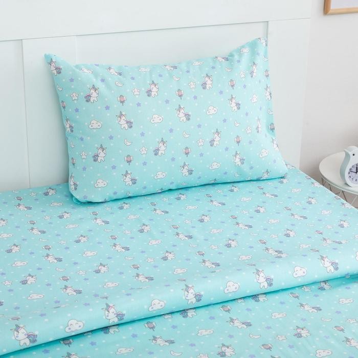 Детское постельное бельё Экономь и Я «Единорожки» 1,5 сп, цвет голубой, 145×210 см, 150×210 см, 50×70 см — 1 шт