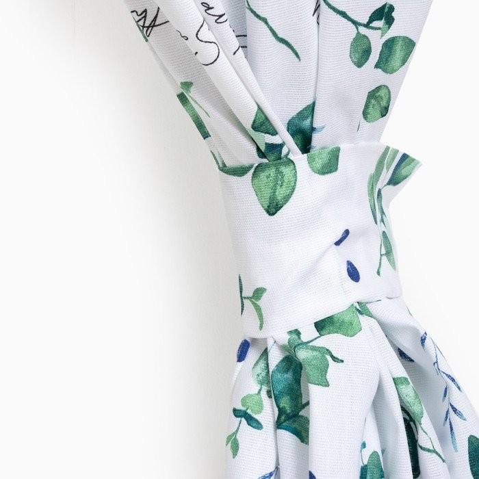 Шторы для кухни «Доляна» Eucalyptus 150*180 см- 2 шт, подхваты — 2 шт, 164г/м2, 100% хл