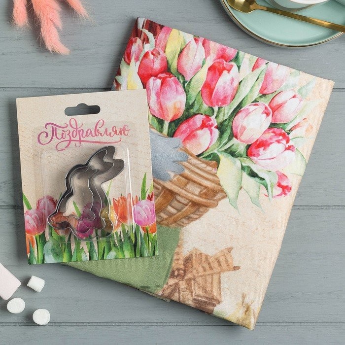 Набор «8 марта» полотенце 40х73см, саржа 190гр/м2, формочки для печенья