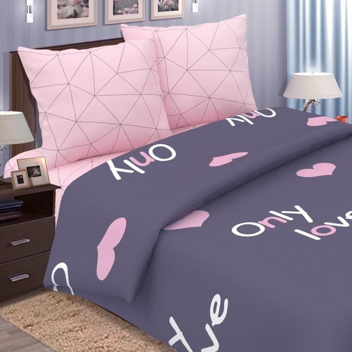 Постельное бельё 1,5сп Pastel «Только Любовь», 147×217, 150×220, 70×70 2шт