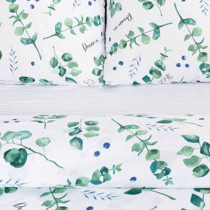 Постельное бельё «Этель» 2 сп Листья эвкалипта 175*215 см, 200*220 см,70*70 см -2 шт