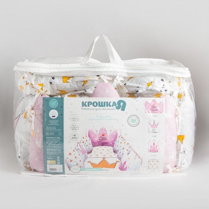 Бортики в кроватку Крошка Я «Little queen» (60х42см-2шт, 30х42см-4шт, 30х30см-4шт), 100% хлопок