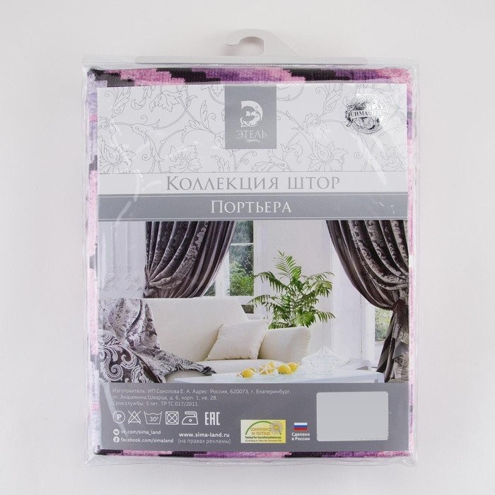 Штора портьерная Этель «Памир» 230×260 см, цвет фиолетовый, 100% полиэстер, блэкаут