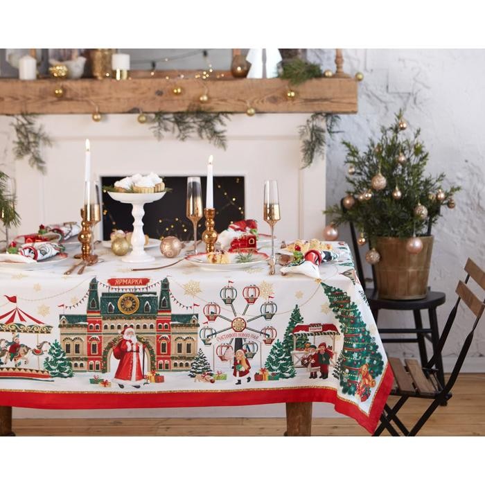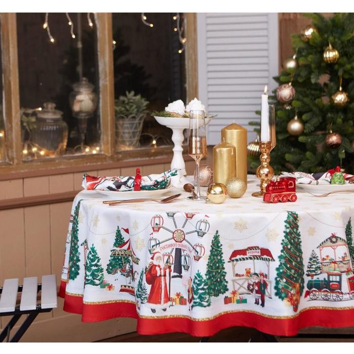 Скатерть «Этель» Новогодняя ярмарка d=150 +/- 3см с ГМВО, 100%хл, саржа 190 гр/м2