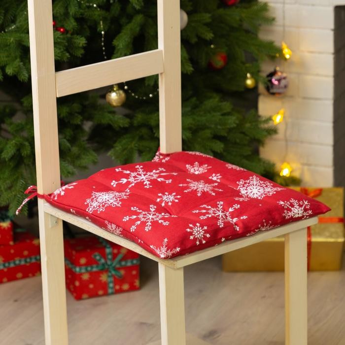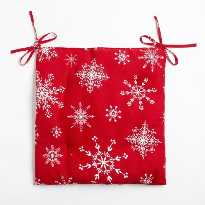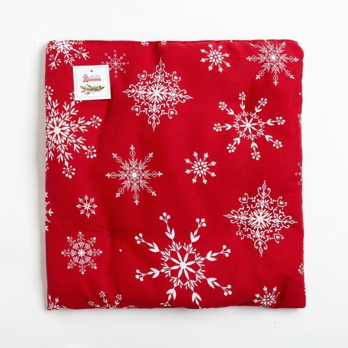 Сидушка на стул «Белые снежинки» 42х42×5 см, 100% хлопок, 164 г/м2