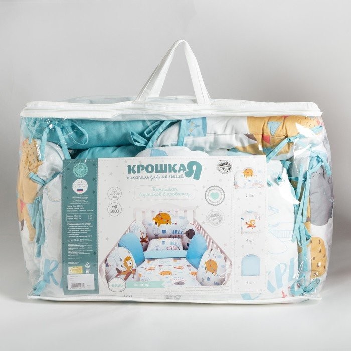 Бортики в кроватку Крошка Я «Авиатор», (60х42см- 2шт, 30х42см- 8шт), 100% хлопок