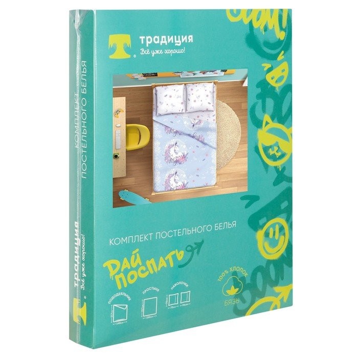 Постельное бельё 1,5сп «Дай поспать» Единорог, голубой 147×217, 150×220, 70х70см — 2 шт