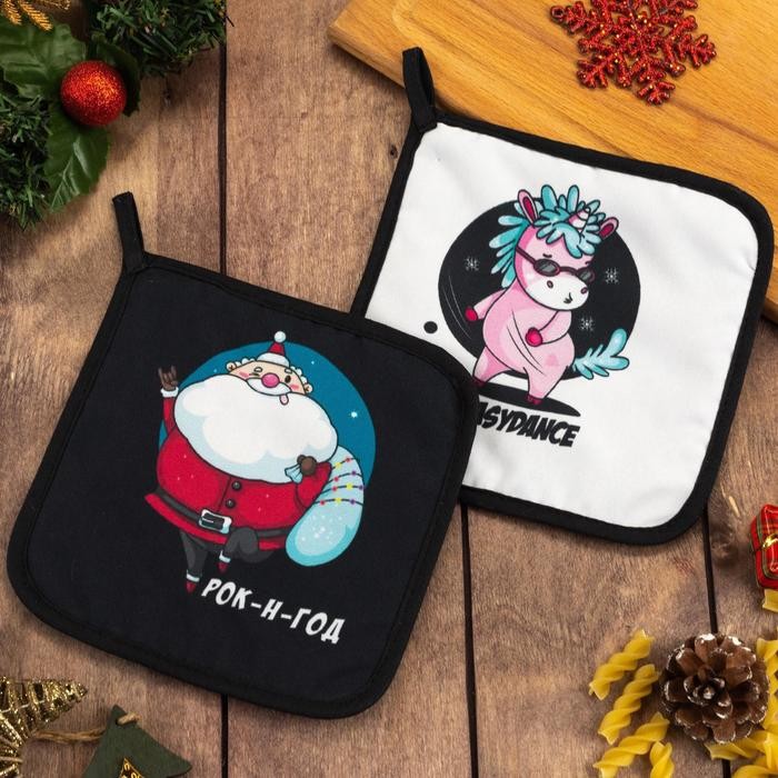 Новогодний набор кухонный «Рок-н-год " прихватка 17×17 — 2шт. 35% хл,65% п/э