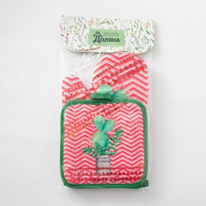 Кухонный набор Доляна «Кактус» прихватка 17×17 см, рукавица 26×16 см
