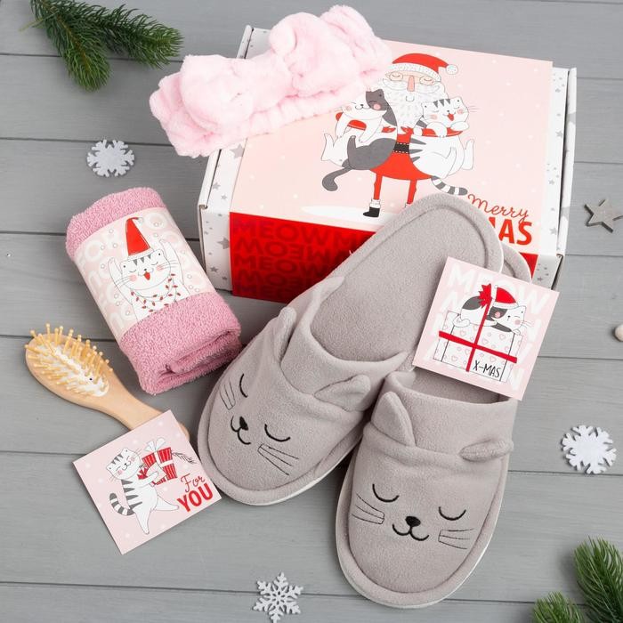 Подарочный набор новогодний «Merry catmas» полотенце и акс