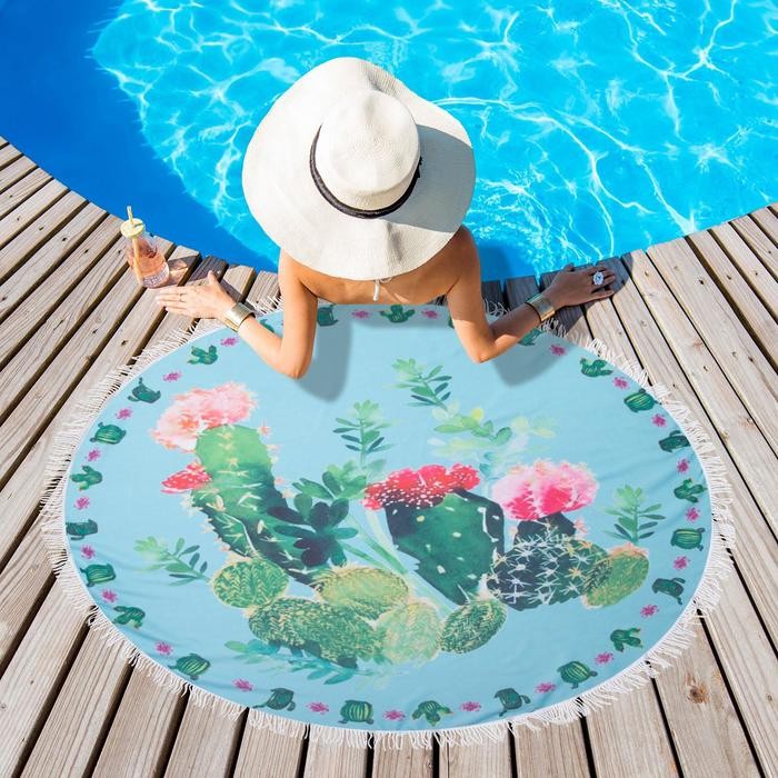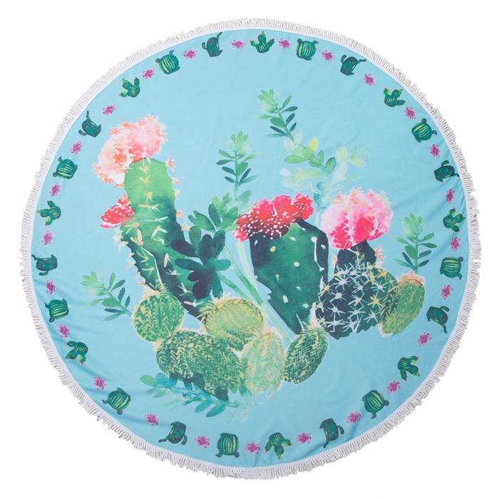 Полотенце пляжное Этель «Кактусы», d 150 см, микрофибра, 100% п/э