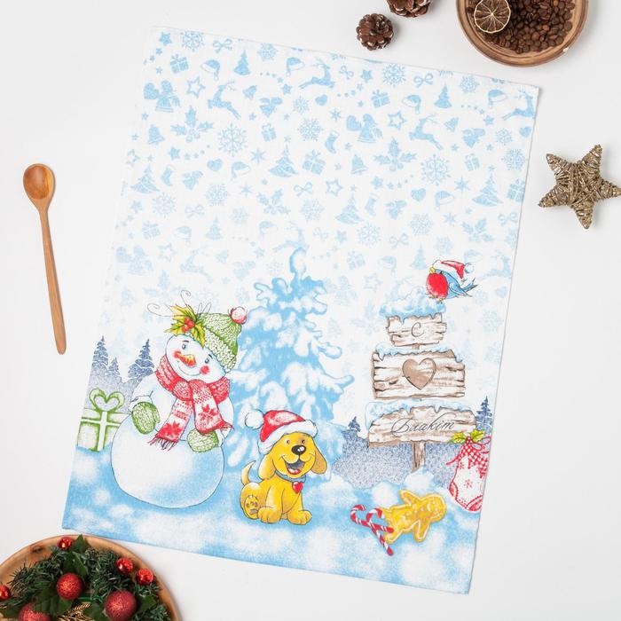 Полотенце вафельное Снеговик 2 47×60 см, хлопок 100%, 185г/м2