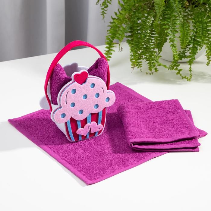 Набор полотенец в корзинке Этель «Сладкоежка» 30х30см — 2шт, цв.фуксия, 100% хл
