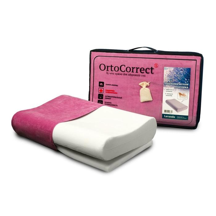 Ортопедическая подушка OrtoCorrect Classic M, с регулировкой высоты, запах лаванды, 58×37 см, валики 9/11 см