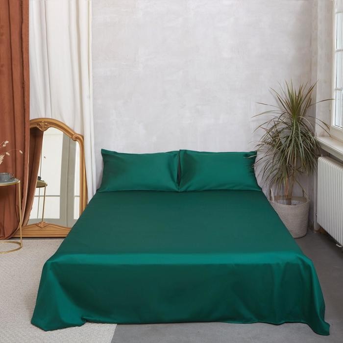 Простыня Этель 150*215 см, цв.изумрудный, 100% хлопок, мако-сатин, 125 г/м²