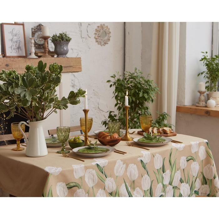 Скатерть «Этель» Белые тюльпаны 149х110см, 100% хл, саржа 190 г/м2