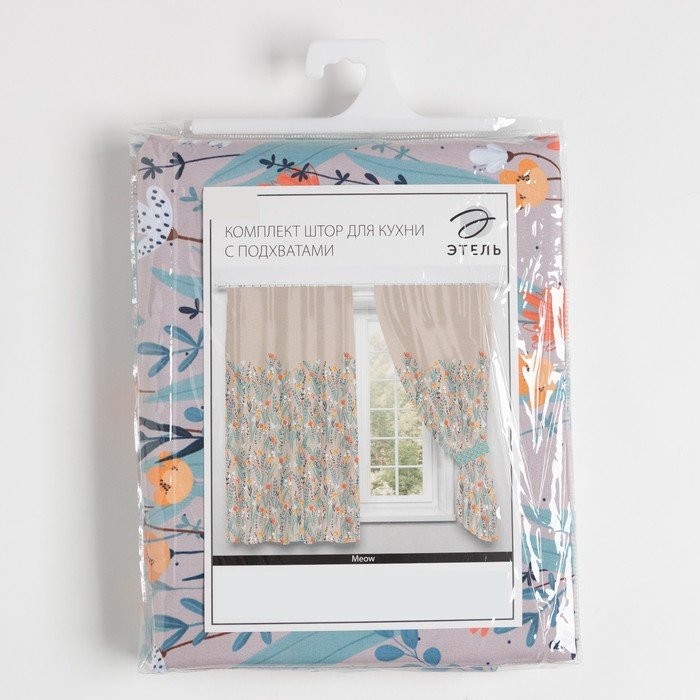 Комплект штор для кухни с подхватами Этель Meow 145х180см-2 шт., 100% п/э